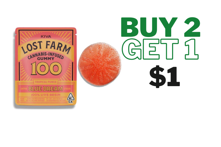 Buy 2 Lost Farms 100mg single gummies, get one for $1.