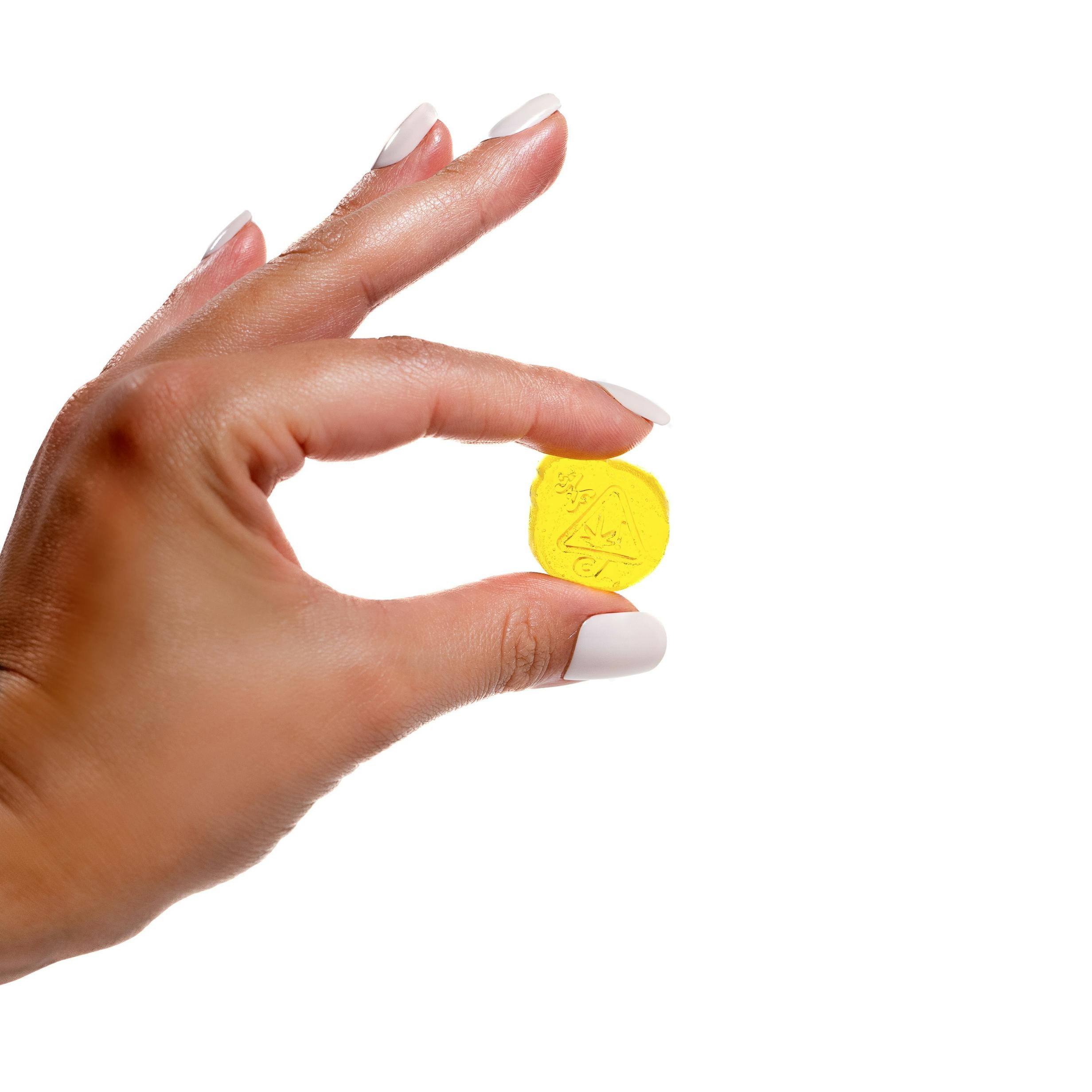 1:1 CBG Raspberry Remedy Rosin Gummies - 100 mg is a edible by Happy Fruit (100mg). Available for pickup and delivery at Atrium dispensary in Los Angeles.