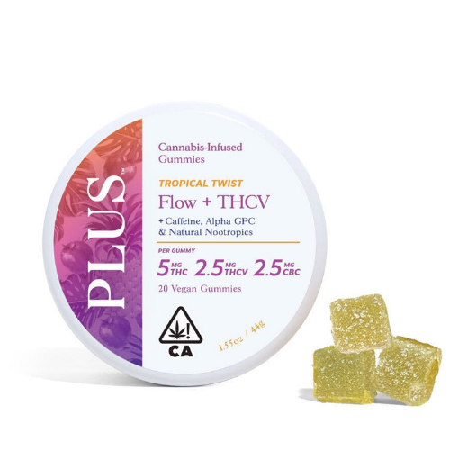 Tropical Twist Flow + THCV gummies are your go-to for a flavorful boost of creativity and focus, ideal for enhancing productivity and igniting your imaginative spark.