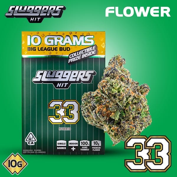 33 Sluggers - 10 Grams is a flower by Natura (10g). Available for pickup and delivery at Atrium dispensary in Los Angeles.