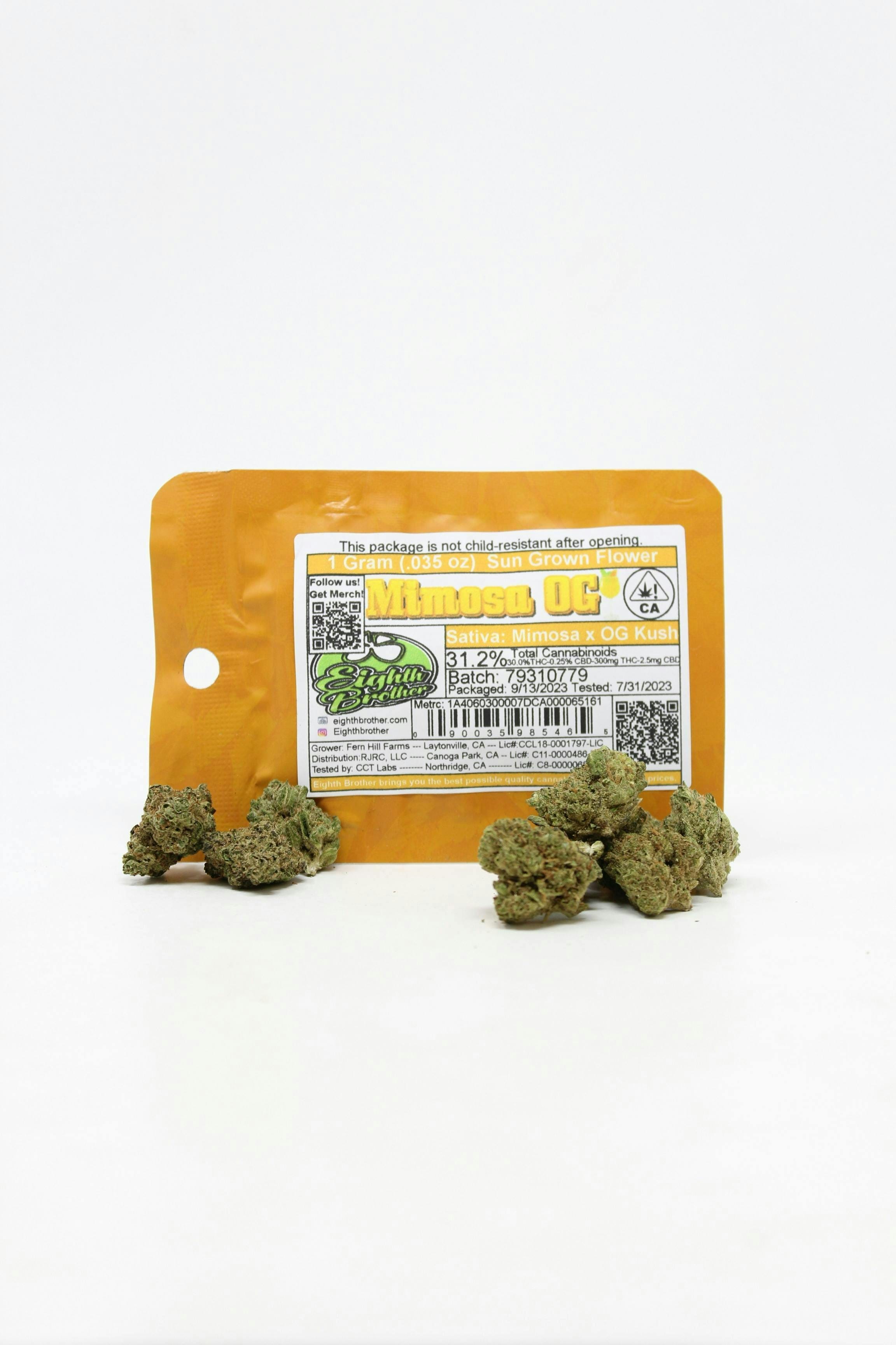 Mimosa OG Eighth Brothers - 1 Gram is a flower by Eighth Brother (1g). Available for pickup and delivery at Atrium dispensary in Los Angeles.