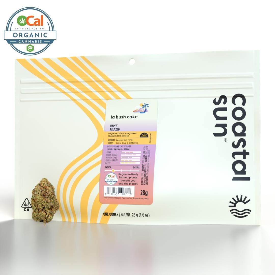 LA Kush Cake Coastal Sun - 28 Grams is a flower by Coastal Sun Greenhouse (28g). Available for pickup and delivery at Atrium dispensary in Los Angeles.