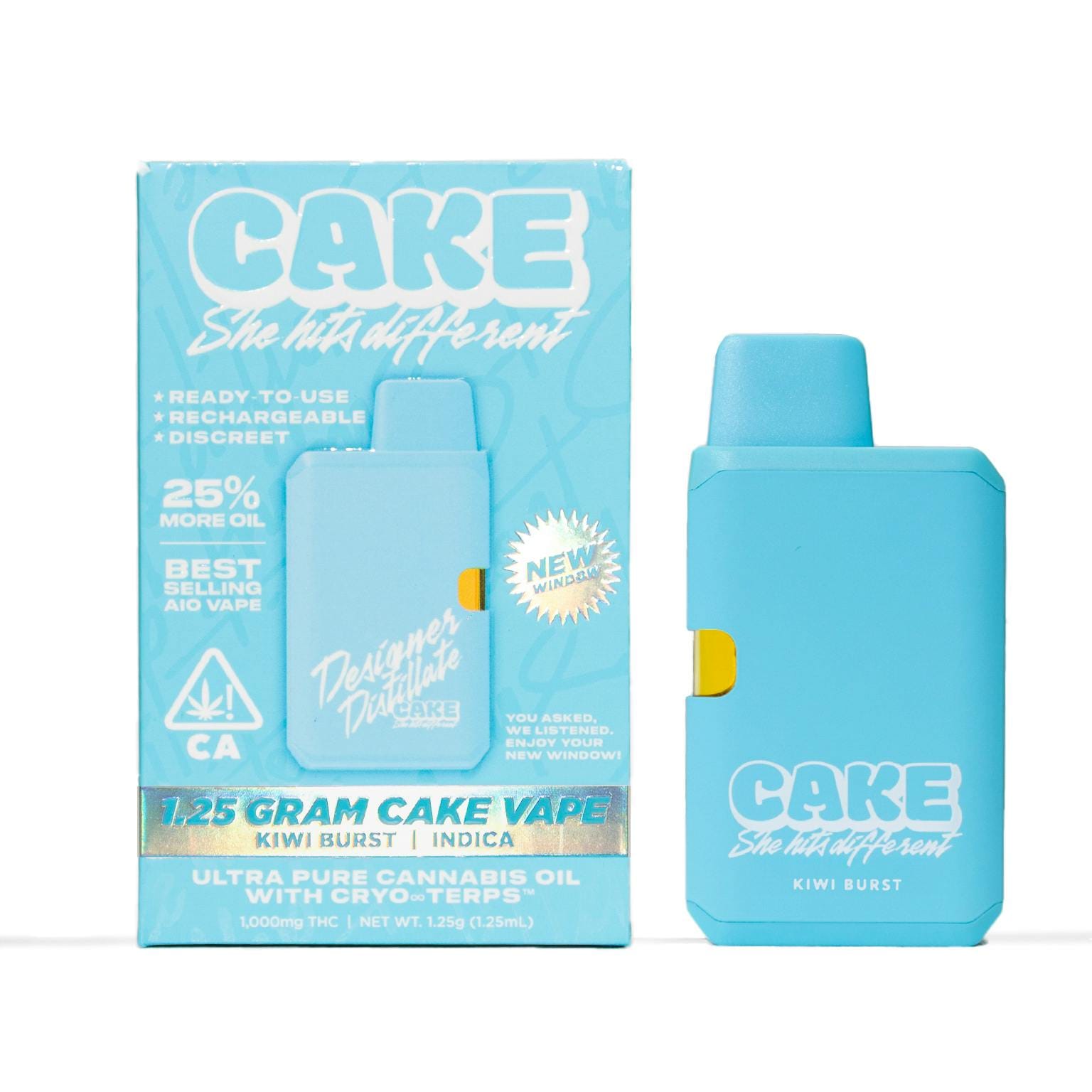 Strawberry Gelato Designer Vape Disposable - 1.25 Grams is a vape cart by CAKE (1g). Available for pickup and delivery at Atrium dispensary in Los Angeles.