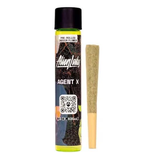 Convenience and Quality: The Alien Labs 1G Pre-Roll Agent X is expertly rolled and ready to use, providing the convenience of a pre-roll with the quality and consistency Alien Labs is known for. It's perfect for those who want a hassle-free, high-quality smoking experience on the go.