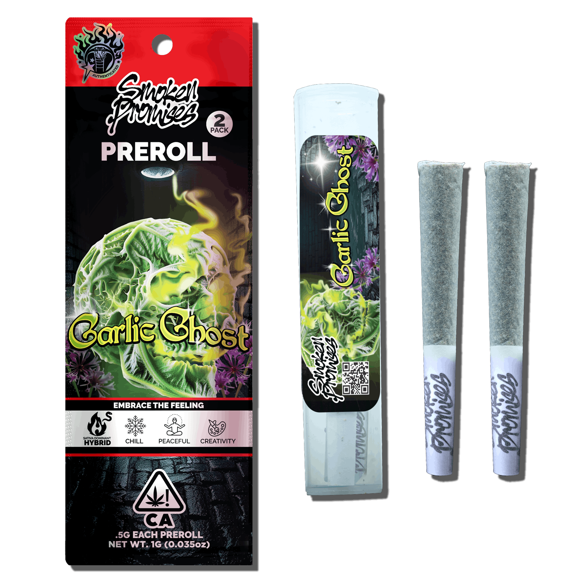 Get ready to conjure up a hauntingly potent experience with Garlic Ghost, a sativa-dominant hybrid that's guaranteed to leave you breathless. This GMO masterpiece is the epitome of dank and gassy, unleashing a pungent aroma that's as intense as it is alluring. With its exceptional lineage, Garlic Ghost delivers a cerebral and uplifting high that's perfect for sparking creativity and focus. But be warned: this strain packs a serious punch, so approach with caution and be prepared to face the ghostly consequences of its unrelenting gas.