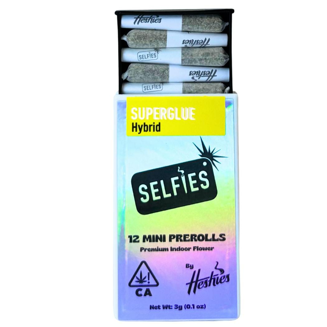 Superglue Prerolls - 12 Pack 3 Grams is a pre-roll by Selfies (3g). Available for pickup and delivery at Atrium dispensary in Los Angeles.