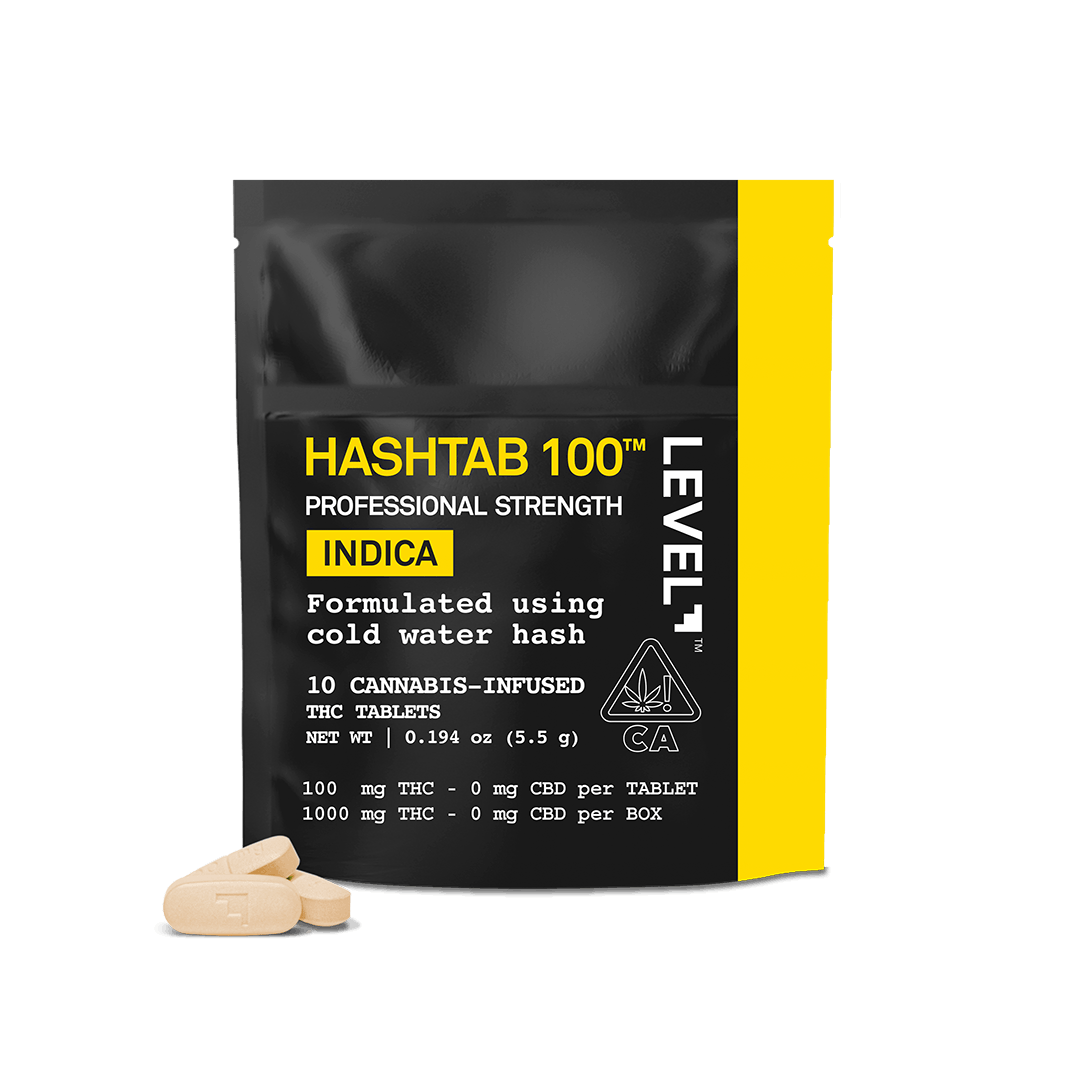 Indica 10pk 100 Hashtab is an indica tincture by Level (1000mg). Available for pickup and delivery at Atrium dispensary in Los Angeles.