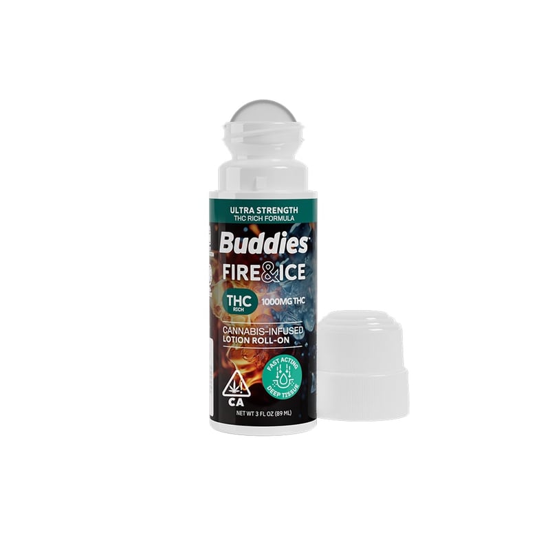 Buddies Fire & Ice Roll-On Topicals combine the fast-acting power of our muscle relief formula with the ease of a roll-on applicator. Enjoy a warming sensation followed by a cooling sensation with lasting benefits as our award-winning line’s soothing combinations of THC, menthol, camphor, eucalyptus, and cinnamon go to work. Need a strong solution? Put the full might of THC behind you with our 1000mg THC formula, designed for maximum strength relief.