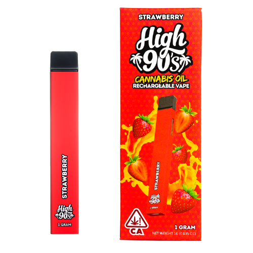 High 90's 1g Disposable Vape Strawberry offers a premier cannabis experience for those seeking a potent and flavorful high. Each device contains 1 gram of premium cannabis oil, celebrated for its purity, potency, and exquisite flavor profile. The Strawberry strain is known for its sweet, berry-like taste and smooth finish, providing a delightful and refreshing vaping experience that is perfect for any time of the day.