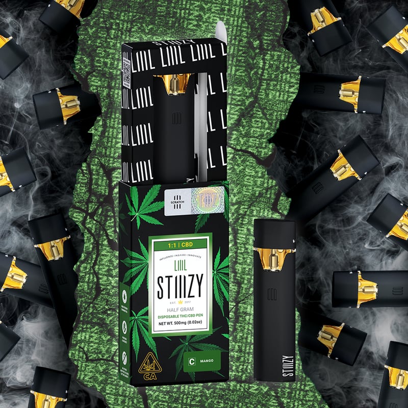 CBD Mango Liiil Disposables - 0.5 Grams is a vape cart by Stiiizy (0.5g). Available for pickup and delivery at Atrium dispensary in Los Angeles.