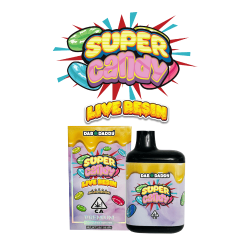 Super Candy Live Resin Vapes - 1 Gram is a vape cart by Dab Daddy (1g). Available for pickup and delivery at Atrium dispensary in Los Angeles.