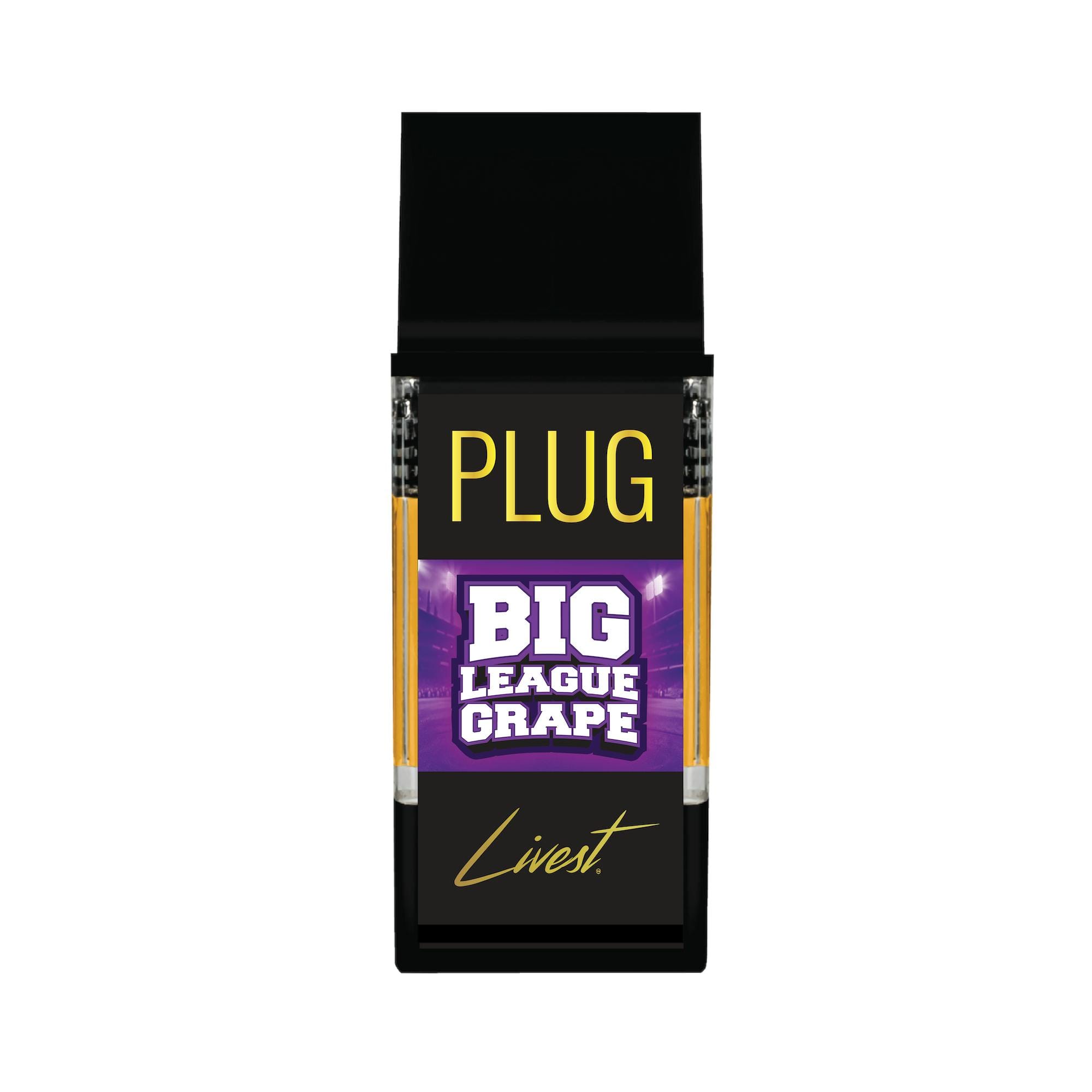 Big League Grape Livest LR Vape - 1 Gram is a vape cart by Plug n' Play (1g). Available for pickup and delivery at Atrium dispensary in Los Angeles.