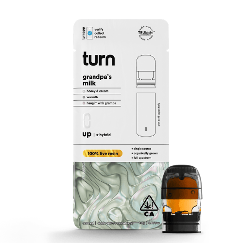 Grandpa's Milk LLR Turn Pod Vape - 1 Gram is a vape cart by Turn Vapes (1g). Available for pickup and delivery at Atrium dispensary in Los Angeles.