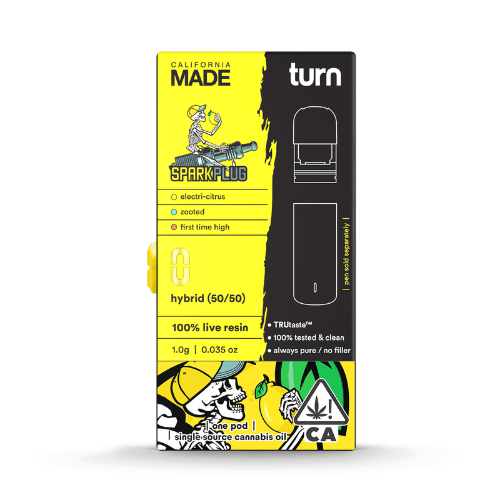 Spark Plug LLR Turn Pod Vape - 1 Gram is a vape cart by Turn Vapes (1g). Available for pickup and delivery at Atrium dispensary in Los Angeles.