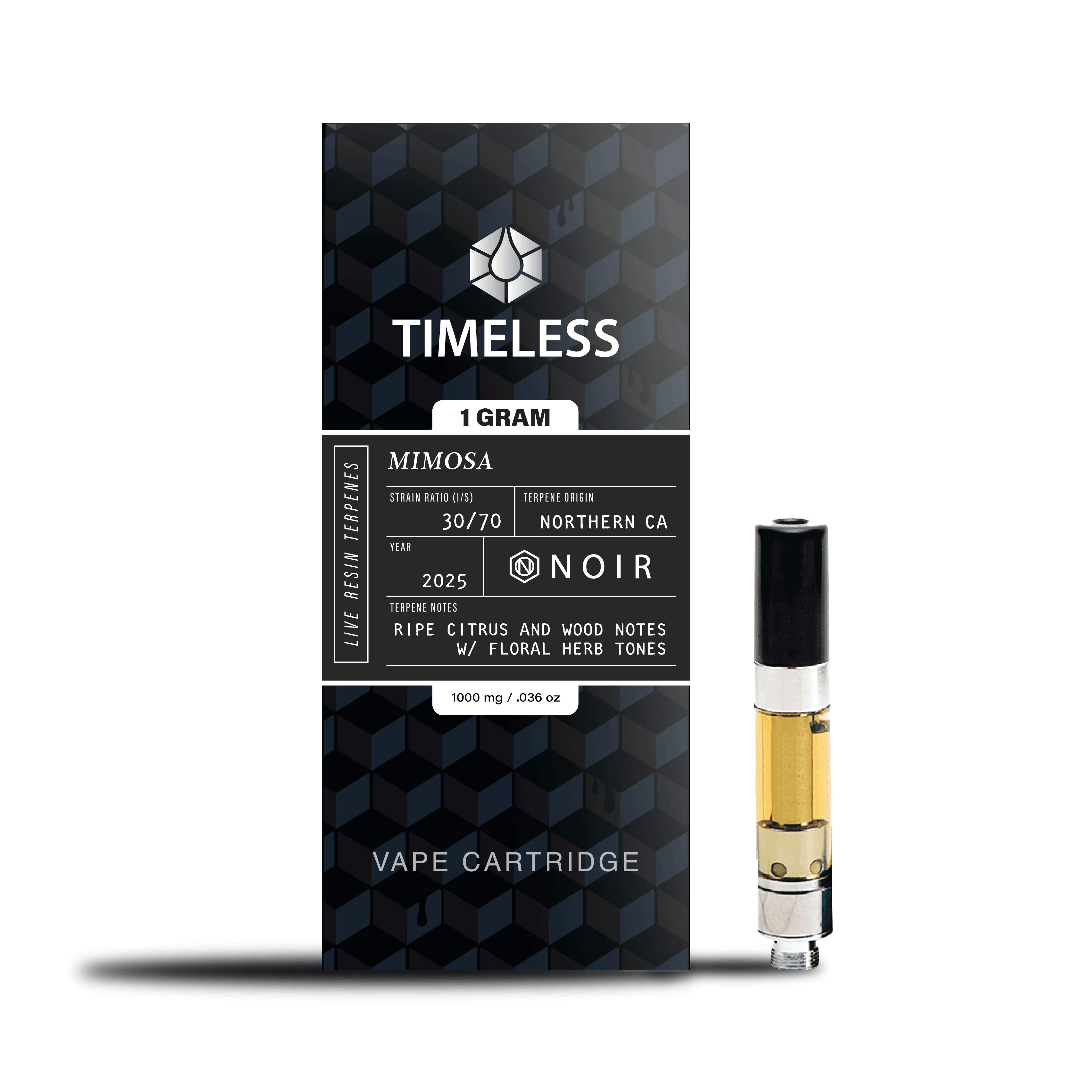 Mimosa Noir Vape Cartridge - 1 Gram is a vape cart by Timeless (1g). Available for pickup and delivery at Atrium dispensary in Los Angeles.