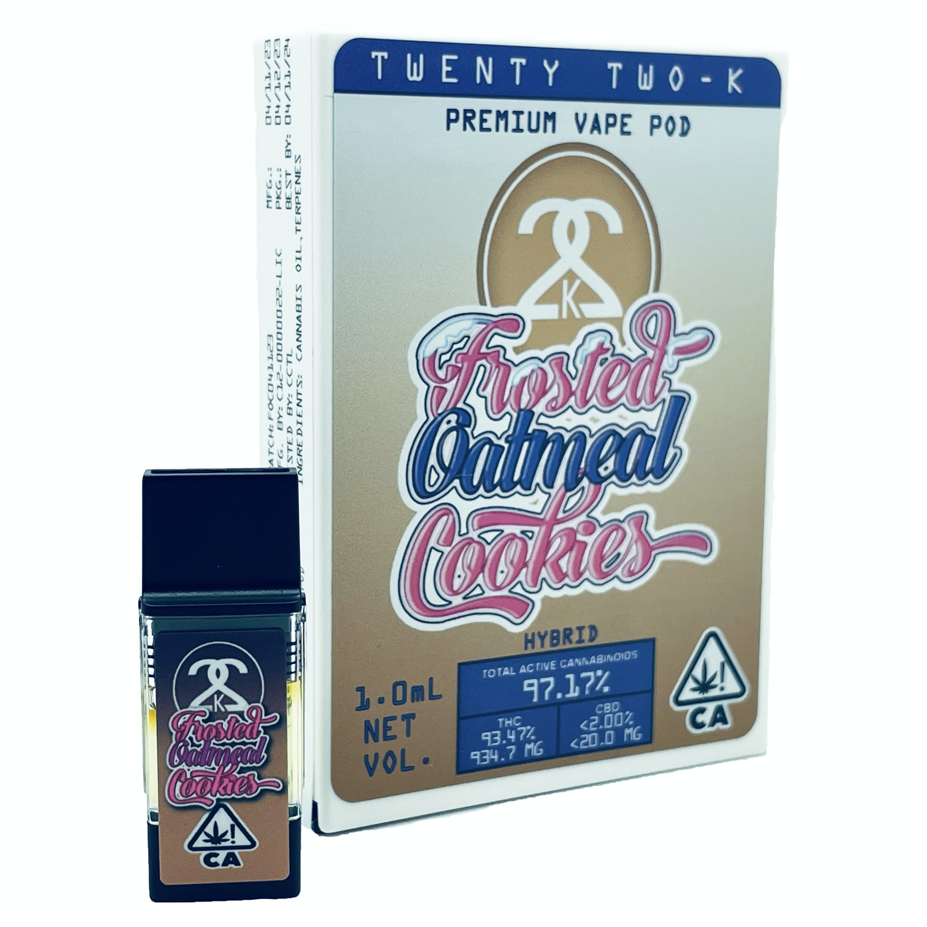 Frosted Oatmeal Cookies Pod Vape - 1 Gram is a vape cart by 22K (1g). Available for pickup and delivery at Atrium dispensary in Los Angeles.
