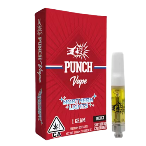 Punch Extracts' Northern Lights Vape Distillate offers a premier cannabis experience for those seeking a potent and relaxing high. Each device contains 1 gram of premium THC distillate, celebrated for its purity, potency, and iconic flavor profile. The Northern Lights strain is renowned for its sweet and spicy taste with earthy undertones, providing a delightful and smooth vaping experience.