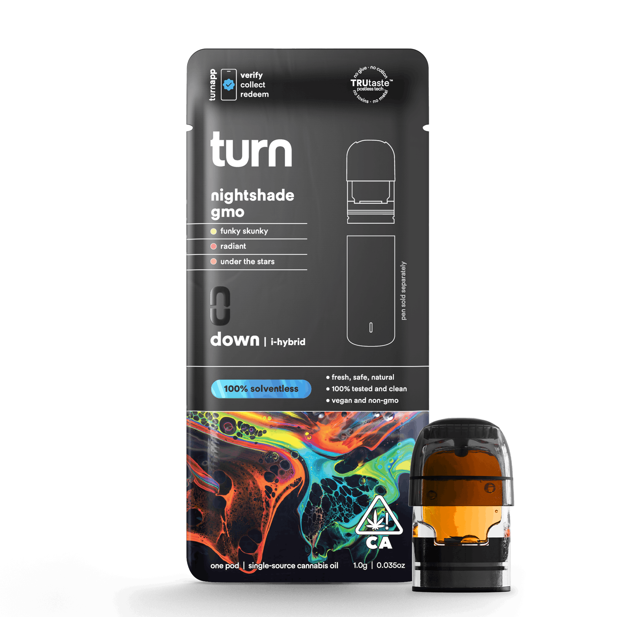 Turn, a pioneer in the cannabis industry, presents their Solventless Vape Pod in Rainbow Brite flavor. Crafted with precision and care, Turn ensures a consistently exceptional vaping experience for their customers.