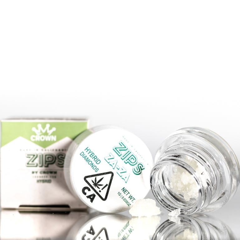 Za Za Diamonds Zips - 1 Gram is a hybrid concentrate by Zips by Crown (1g). Available for pickup and delivery at Atrium dispensary in Los Angeles.