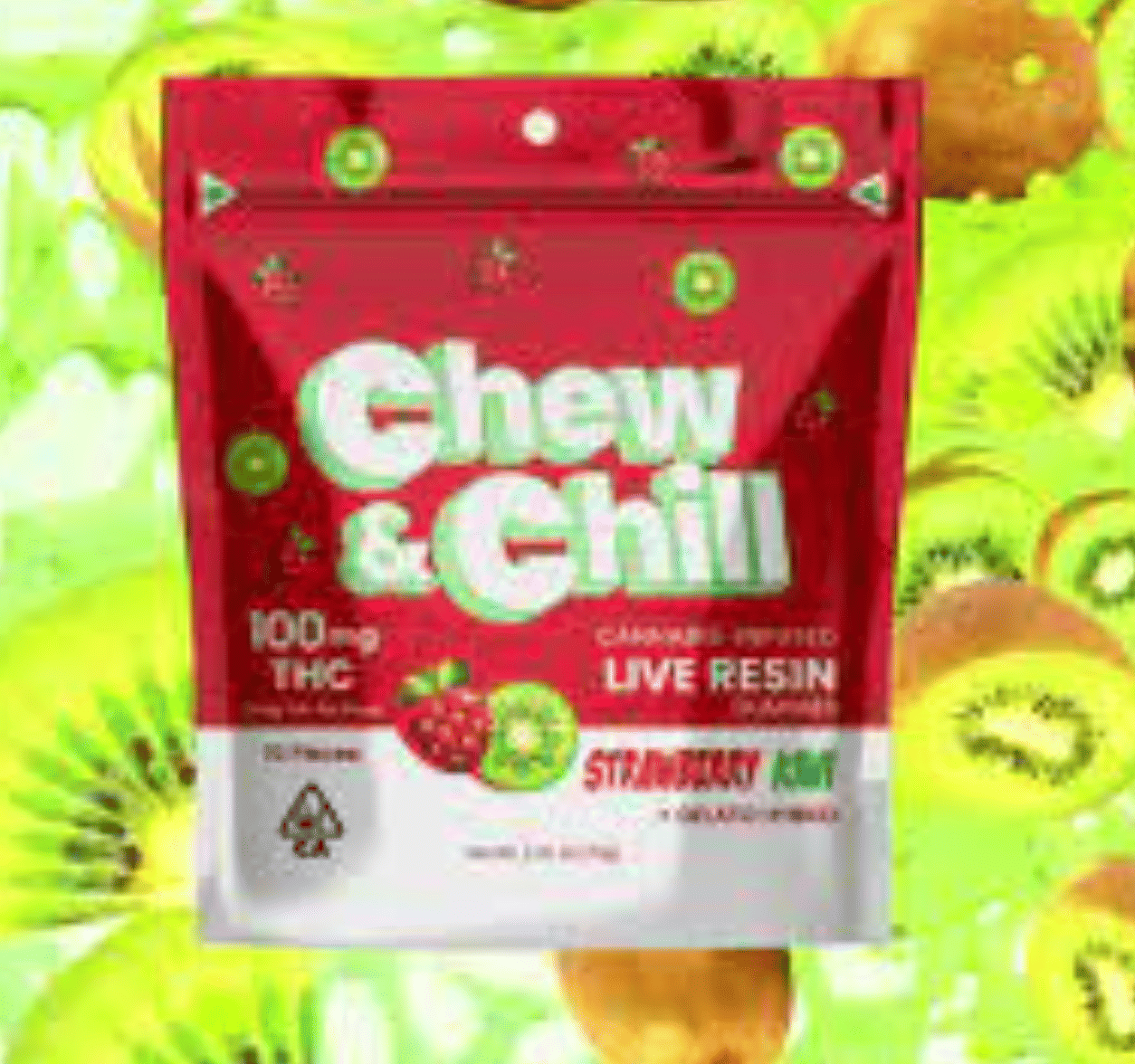 Strawberry Kiwi Hybrid Gummies is a hybrid edible by Chew & Chill (100mg). Available for pickup and delivery at Atrium dispensary in Los Angeles.