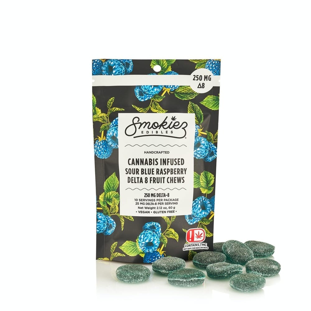 D8 Blue Raspberry Fruit Chews 100mg Edible is a edible by Smokiez (100mg). Available for pickup and delivery at Atrium dispensary in Los Angeles.