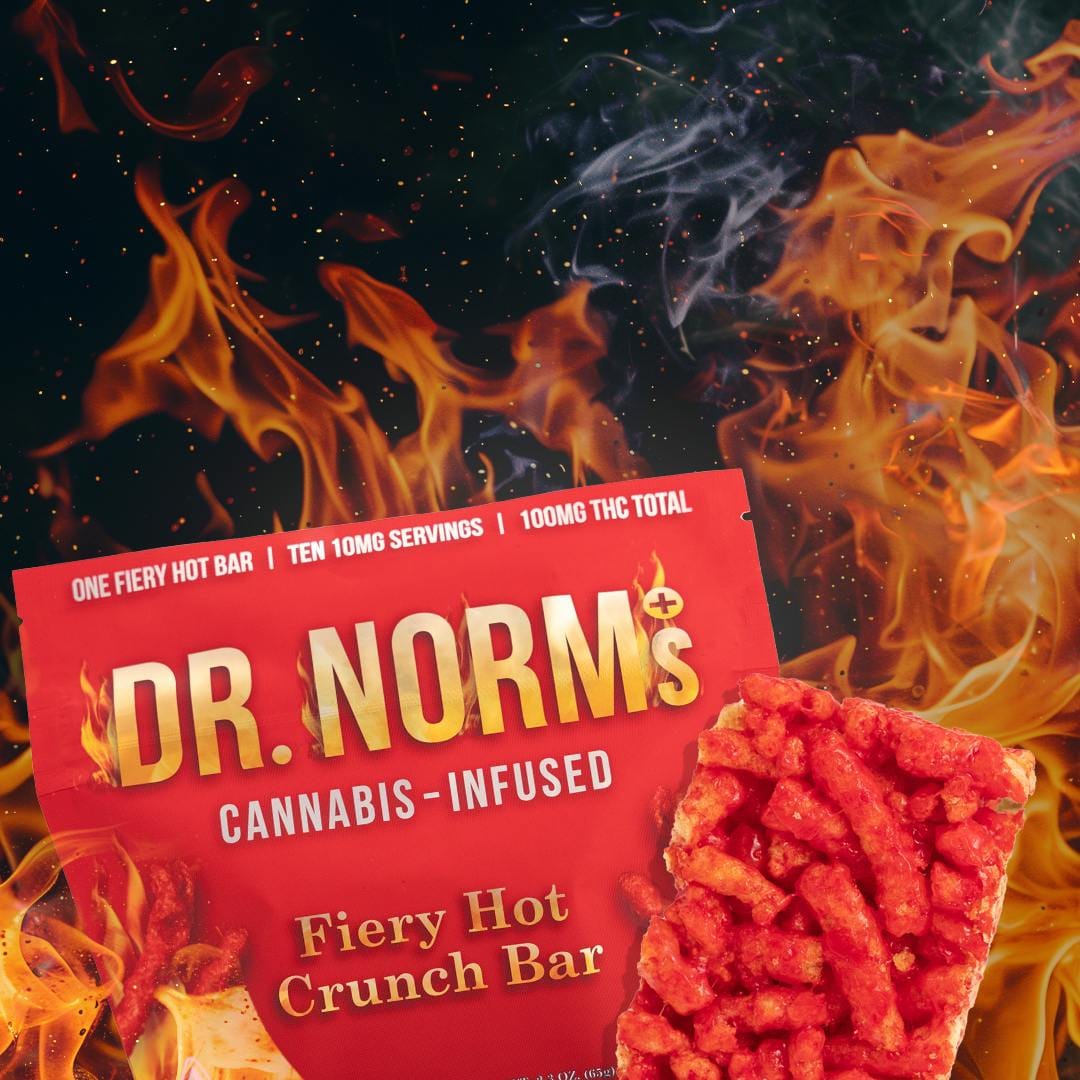 Fiery Hot Crunch Bar Crispy Rice Bar - 100 mg is a edible by Dr. Norm's (100mg). Available for pickup and delivery at Atrium dispensary in Los Angeles.