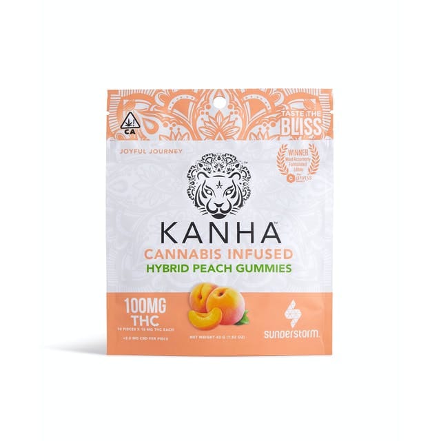 Peach Hybrid 100mg Edible is a hybrid edible by Kanha (100mg). Available for pickup and delivery at Atrium dispensary in Los Angeles.