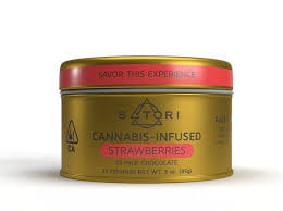 Satori Tin Strawberries in Milk Chocolate (Fast Acting) - 100 mg is a hybrid edible by Kind House (100mg). Available for pickup and delivery at Atrium dispensary in Los Angeles.