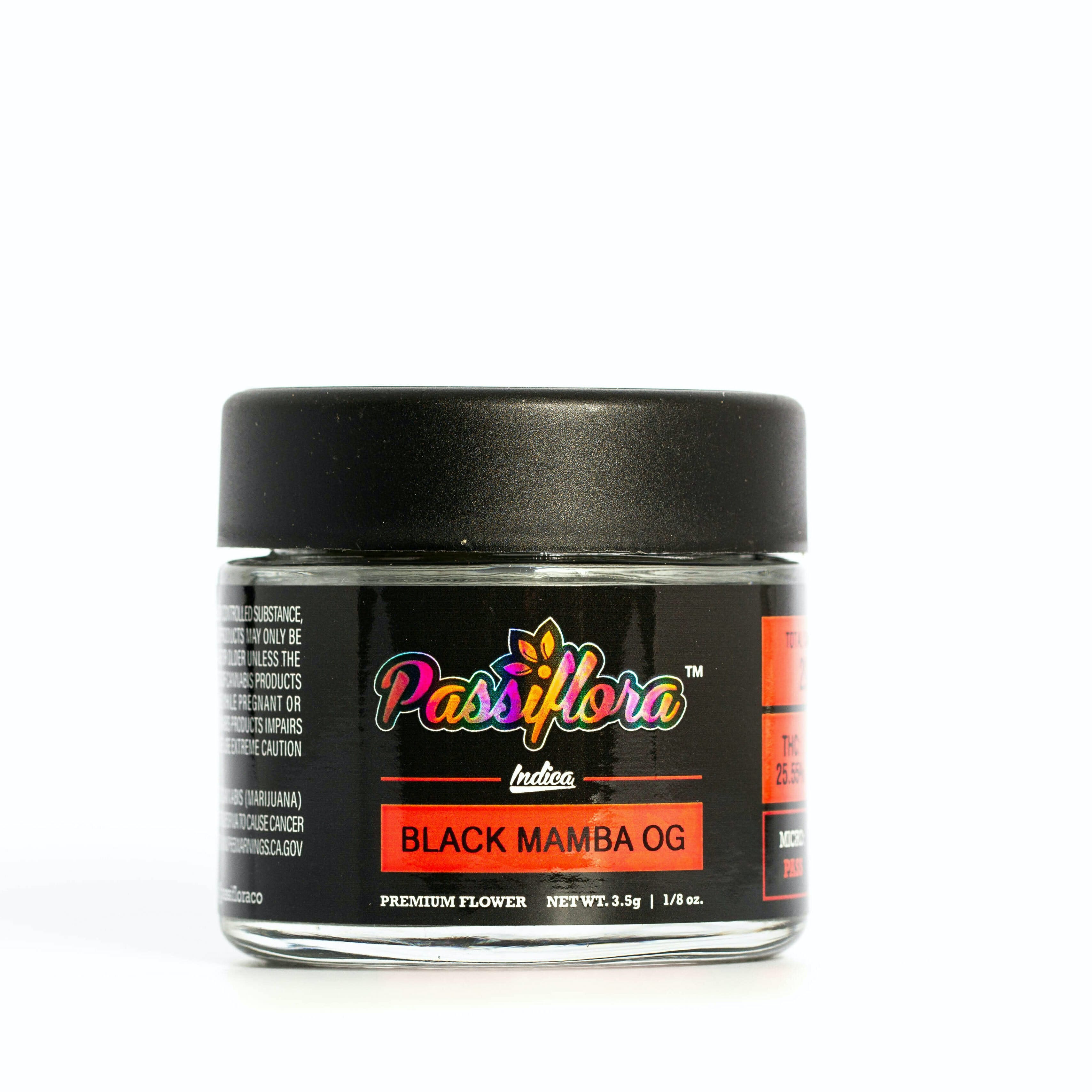 Black Mamba - 3.5 Grams is a flower by Passiflora (3.5g). Available for pickup and delivery at Atrium dispensary in Los Angeles.