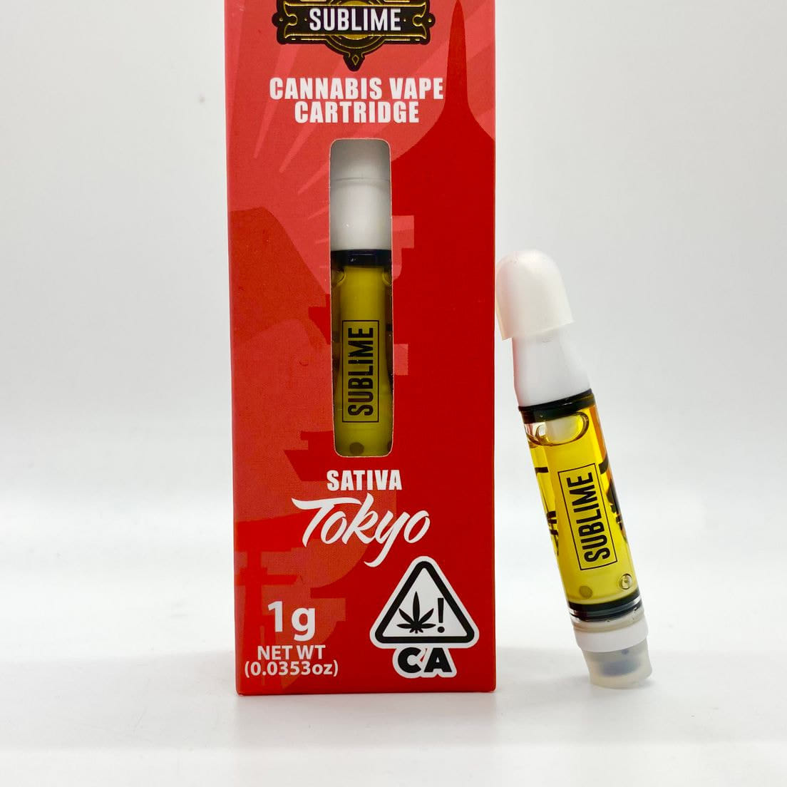 Tokyo Sativa Cartridge - 1 Gram is a sativa vapes (cartridges) by Sublime (0.001g). Available for pickup and delivery at Atrium dispensary in Los Angeles.